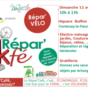 Répar’Vélos et Répar’Kfé à Fontenay Répar'Vélos et Répar'Kfé organisé par nos associations partenaires, avec une ... 12 Avr 10 h 00 min - 13 h 00 min Square BuffonSquare Buffon Fontenay-le-Fleury